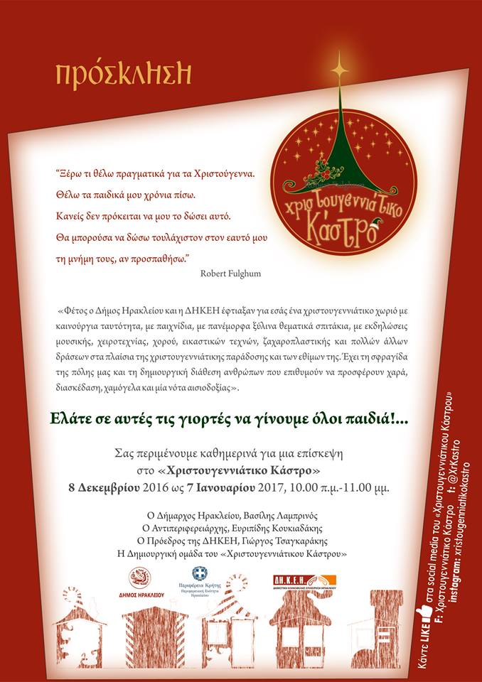 Με ένα σύντομο βιντεάκι ο Δήμος Ηρακλείου και η ΔΗΚΕΗ καλεί μικρούς και μεγάλους στο «Χριστουγεννιάτικο Κάστρο» και στην έναρξη των εκδηλώσεων την Πέμπτη 8 Δεκεμβρίου στην Πλατεία Ελευθερίας στις 19:00.