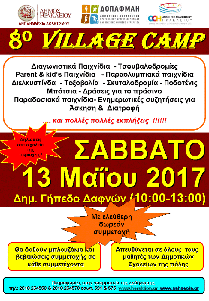 Αρχική ΑΘΛΗΤΙΚΑ VillageCamp στην περιφέρεια του Δήμου Ηρακλείου