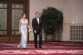 Η σύντροφος του Πρωθυπουργού επέλεξε μια τουαλέτα στο χρώμα του πάγου, με σκίσιμο μέχρι το γόνατο, μαύρα πέδιλα, ενώ τα μαλλιά της ήταν πιασμένα σε χαμηλό κότσο.