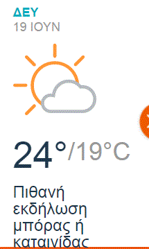 ΚΑΙΡΟΣ Ο καιρός στο Ηράκλειο Δευτέρα 19 Ιουνίου 2017 19 Ιουνίου 2017 33 Κοινοποίηση : Ακολουθήστε το Entospolis στο Facebook Κοινοποίηση :