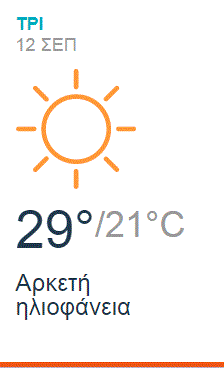 ΚΑΙΡΟΣ Ο καιρός στο Ηράκλειο Τρίτη 12 Σεπτεμβρίου 2017 12 Σεπτεμβρίου 2017 37 Κοινοποίηση : Ακολουθήστε το Entospolis στο Facebook Κοινοποίηση :