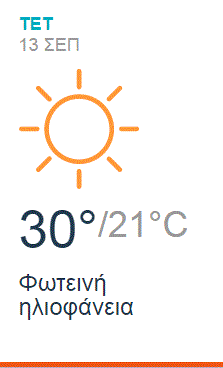 ΚΑΙΡΟΣ Ο καιρός στο Ηράκλειο Τετάρτη 13 Σεπτεμβρίου 2017 13 Σεπτεμβρίου 2017 26 Κοινοποίηση : Ακολουθήστε το Entospolis στο Facebook Κοινοποίηση :