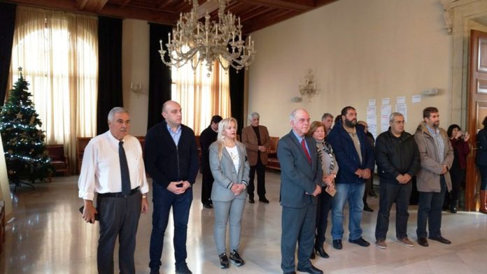 Τα κάλαντα της Πρωτοχρονιάς και άλλες εορταστικές μελωδίες παιάνισε σήμερα η Φιλαρμονική του Δήμου Ηρακλείου στο Δήμαρχο κ. Βασίλη Λαμπρινό και τους Αντιδημάρχους που την υποδέχτηκαν στην αίθουσα Ελευθέριος Βενιζέλος.