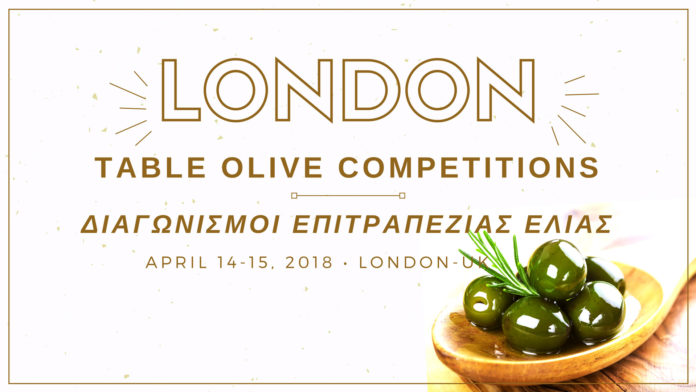 Οι καλύτερες, επιτραπέζιες ελιές πρόκειται να ταξιδέψουν ως την αγγλική πρωτεύουσα και να βραβευτούν στους διεθνείς διαγωνισμούς επιτραπέζιας ελιάς. Η επιτραπέζια ελιά θα έχει την τιμητική της στο Λονδίνο στις 14-15 Απρίλιου 2018, όπου πρόκειται να πραγματοποιηθούν οι διεθνείς διαγωνισμοί London ITOC 2018. Οι διοργανωτές αναμένουν να συγκεντρώσουν τις καλύτερες επιτραπέζιες ελιές από Ισπανία, Ιταλία, Ελλάδα, Τουρκία …από όλες τις παραγωγικές χώρες, ενώ θα δοθούν χωριστά βραβεία για την ποιότητα των επιτραπέζιων ελιών table olive awards για την ποιότητα, αλλά και για την συσκευασία τους. www.LondonOliveoil.com London ITOC 2018, London International Table Olive Competitions: Quality award of Table Olive, Packaging award of Table Olive.