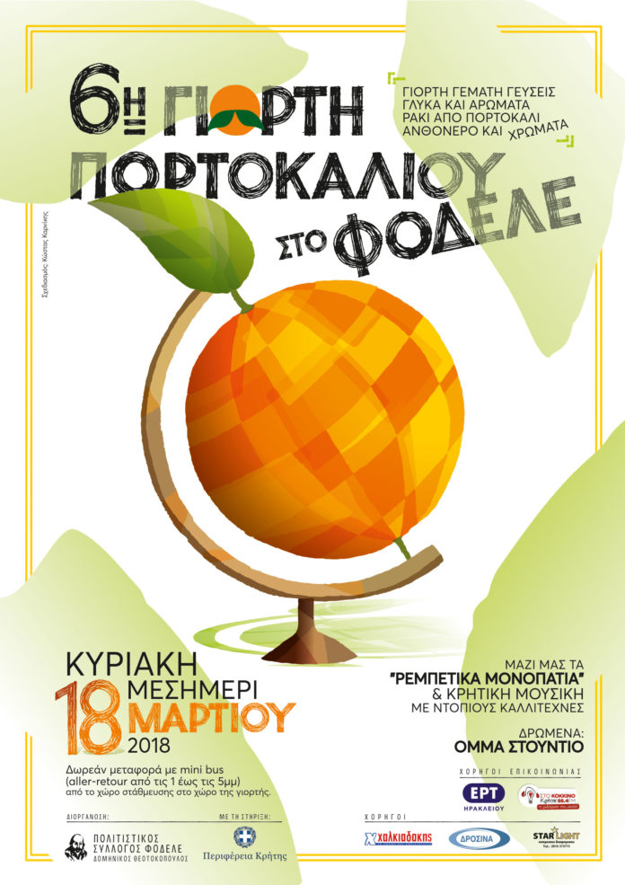 Ο Πολιτιστικός Σύλλογος του Φόδελε «Δομήνικος Θεοτοκόπουλος» οργανώνει την «6η Γιορτή Πορτοκαλιού» την Κυριακή 18 Μαρτίου από τις 12 το μεσημέρι με την στήριξη της Περιφέρειας Κρήτης.