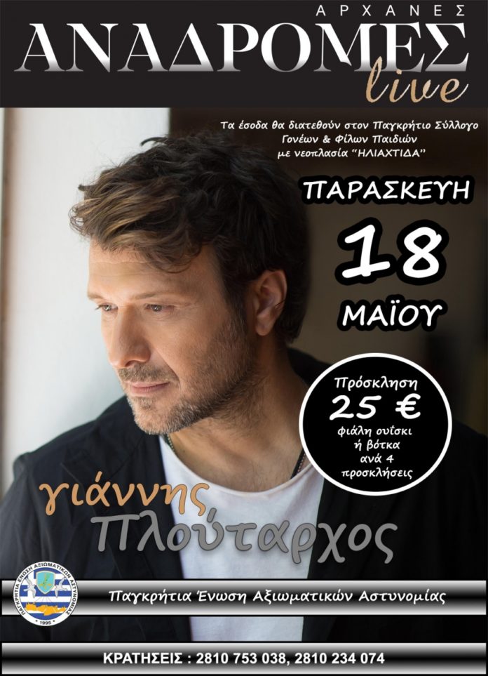 Η Ένωση Αξιωματικών Αστυνομίας Περιφέρειας Κρήτης διοργανώνει για τρίτη συνεχή χρονιά την ετήσια χοροεσπερίδα της για φιλανθρωπικό σκοπό μετά τις επιτυχημένες χοροεσπερίδες το 2016 με την Πέγκυ Ζήνα και πέρυσι με το Νίκο Μακρόπουλο.