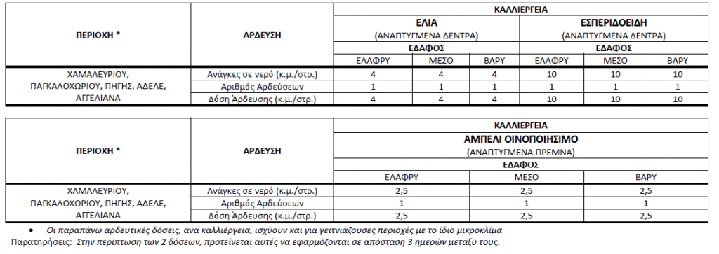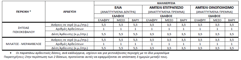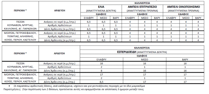 Εβδομαδιαίο δελτίο αρδευτικών αναγκών καλλιεργειών (Περιοχές Π.Ε. Ηρακλείου)