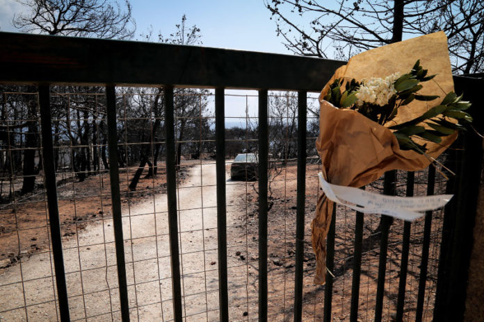 Αλλοι τα άφησαν στο χώμα. Είναι ο αποχαιρετισμός των επιζώντων στους 26 ανθρώπους που έχασαν τόσο άδικα την ζωή τους, όταν εγκλωβίστηκαν σε αυτό το σημείο δίπλα στην οδό Ειρήνης στο Μάτι. Δεν κατάφεραν να σωθούν γιατί από κάτω είναι γκρεμός. Δεν υπήρχε διέξοδος. Κάηκαν ζωντανοί..