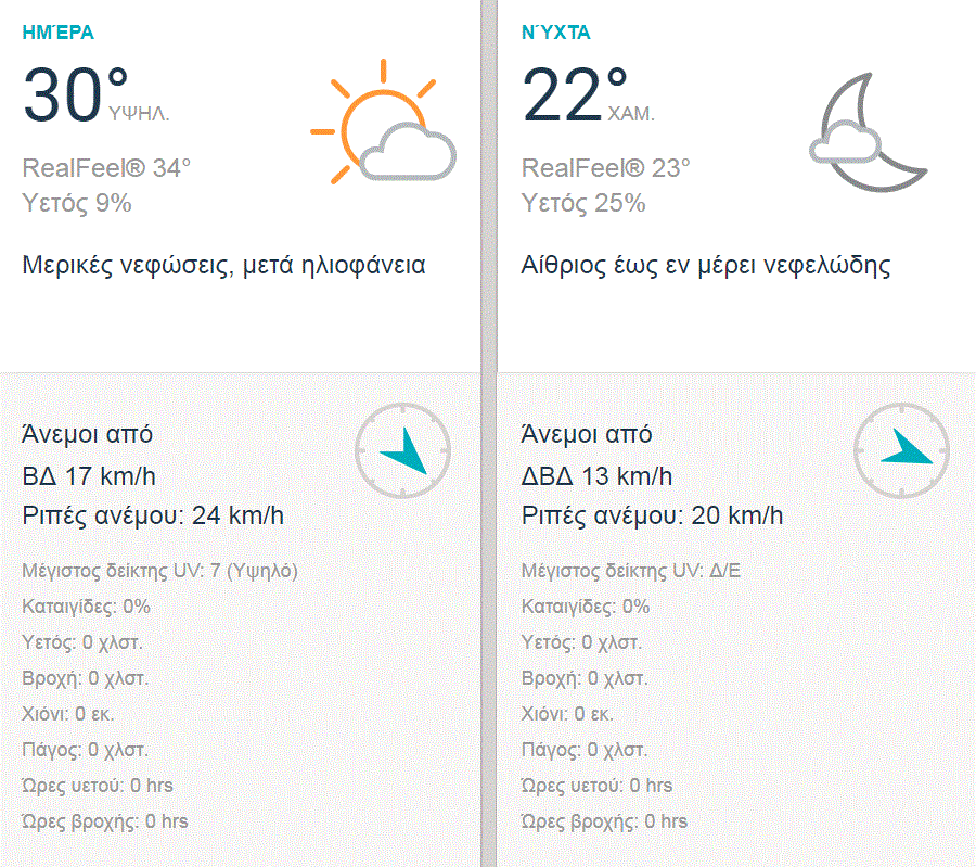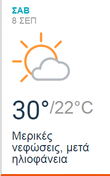 ΚΑΙΡΟΣ Ο καιρός στο Ηράκλειο Σάββατο 8 Σεπτεμβρίου 2018 8 Σεπτεμβρίου 2018 15 Κοινοποίηση : www.accuweather.com Ακολουθήστε το Entospolis στο Facebook Κοινοποίηση :