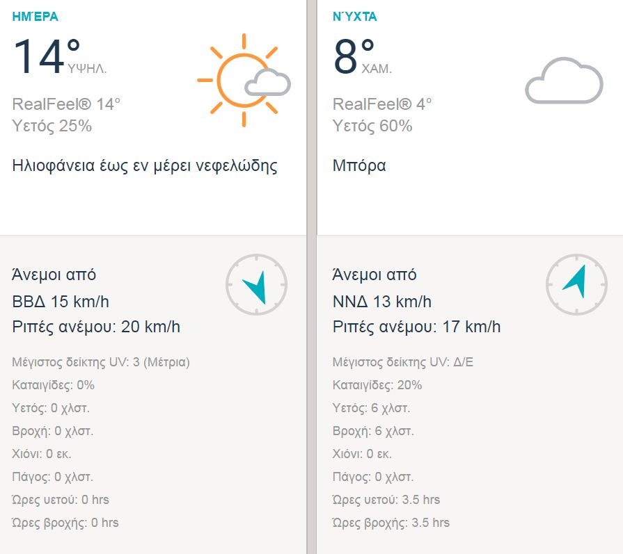 ΚΑΙΡΟΣ Ο καιρός στο Ηράκλειο Κυριακή 30 Δεκεμβρίου 2018 30 Δεκεμβρίου 2018 4 Κοινοποίηση : Πηγή: https://www.accuweather.com Ακολουθήστε το Entospolis στο Facebook Κοινοποίηση :