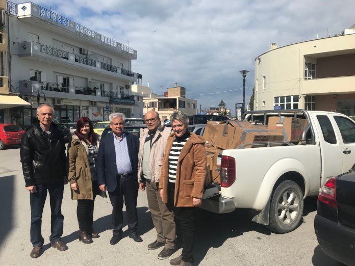 Ειδικότερα, ο αδερφός του Προέδρου του Παγκοσμίου Συμβουλίου Κρητών Μανώλη Κουγιουμουτζή, Ζαχαρίας, παρέδωσε στον Δήμαρχο Μαλεβιζίου Κώστα Μαμουλάκη το υλικό που συγκέντρωσε το Συμβούλιο, με σκοπό να διατεθεί σε συνανθρώπους μας που υποστηρίζονται από τις κοινωνικές δομές του Δήμου.