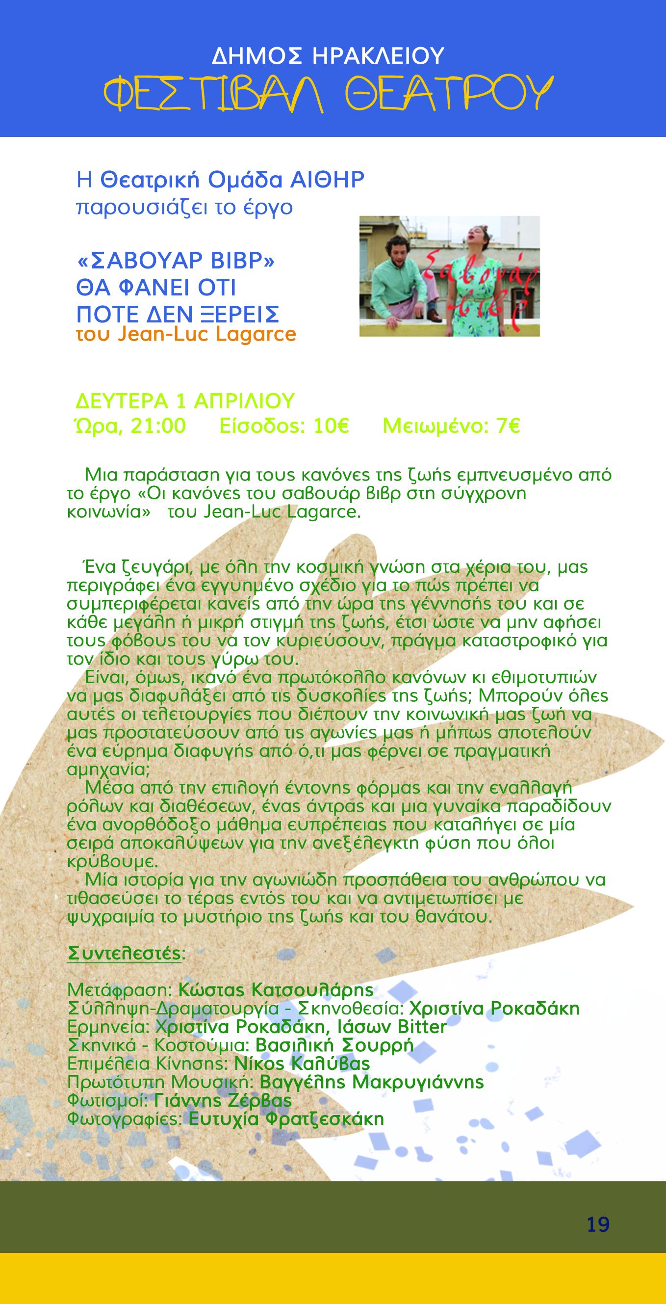 Η Θεατρική Ομάδα ΑΙΘΗΡ  παρουσιάζει το έργο «ΣΑΒΟΥΑΡ ΒΙΒΡ»  ΘΑ ΦΑΝΕΙ ΟΤΙ ΠΟΤΕ  ΔΕΝ ΞΕΡΕΙΣ του Jean-Luc Lagarce
