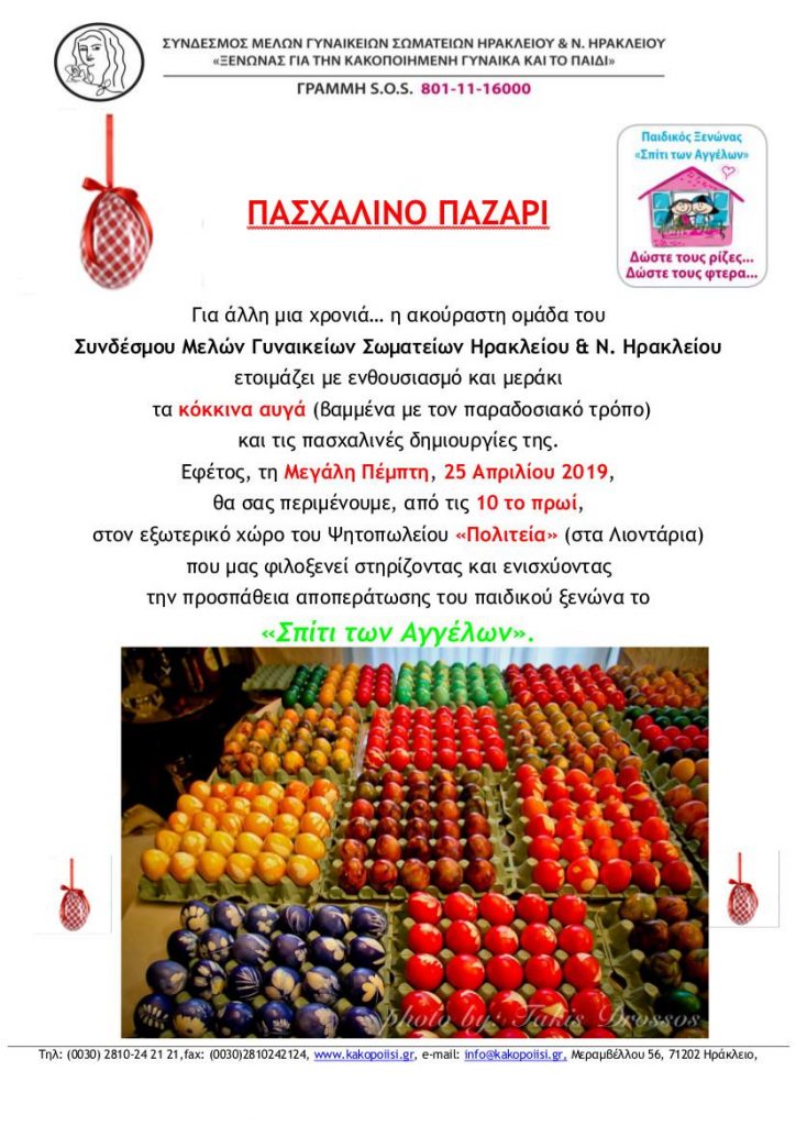 ΠΑΣΧΑΛΙΝΟ ΠΑΖΑΡΙ από τον Σύνδεσμο Μελών Γυναικείων Σωματείων Ηρακλείου & Ν. Ηρακλείου