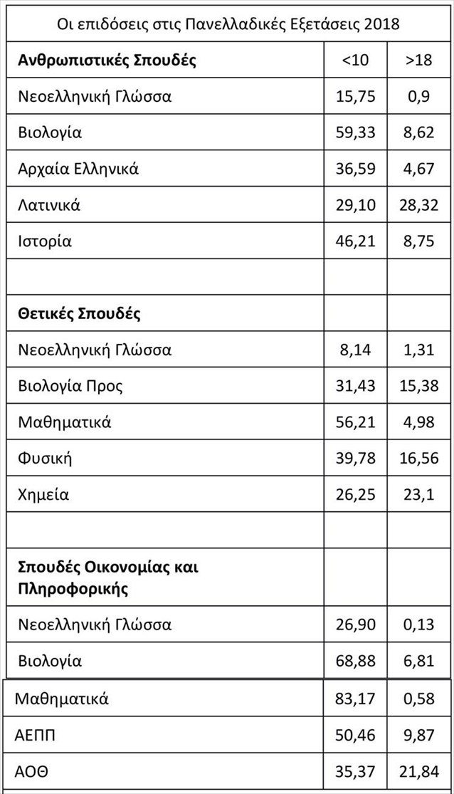 Στη Νεοελληνική Γλώσσα δεν έχουμε ακραίες επιδόσεις στο σύνολο των υποψηφίων. Λίγοι, σχετικά, υποψήφιοι γράφουν κάτω από τη βάση, μόλις το 15,9% ποσοστό μικρό σε σχέση με τα άλλα μαθήματα. Ελάχιστο είναι, όμως, και το ποσοστό των αριστούχων, μόλις 0,85%. Δηλαδή το 83,25% γράφει μεταξύ 10 και 18. Αυτός είναι, πιστεύω, ο λόγος που πάντα το πρώτο μάθημα που εξετάζεται στις Πανελλαδικές είναι η Νεοελληνική Γλώσσα.