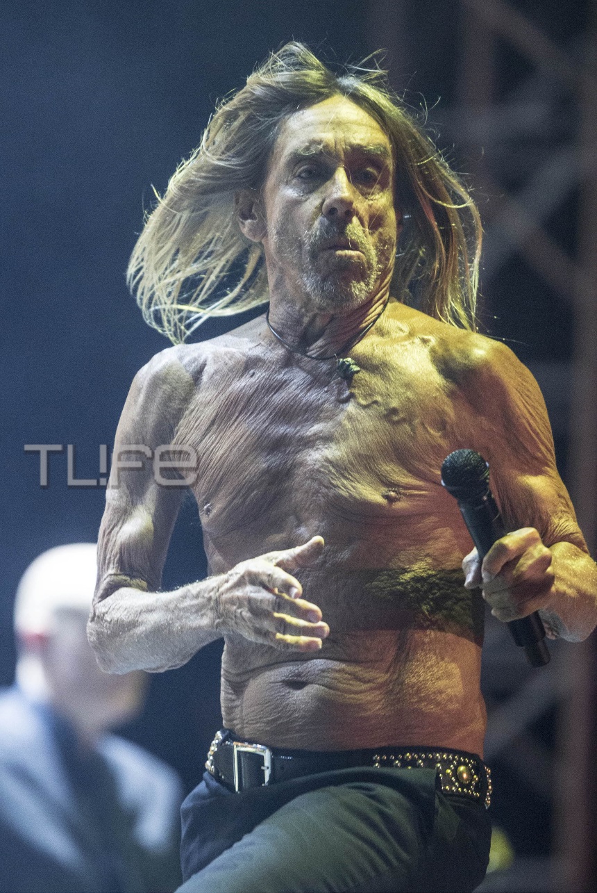 Ο ζωντανός θρύλος της rock μουσικής Iggy Pop εμφανίστηκε σχεδόν γυμνός στη σκηνή, φορώντας μόνο ένα μαύρο παντελόνι και ζώνη. Η αλήθεια είναι ότι χθες η θερμοκρασία έφτασε μέχρι και τους 34 βαθμούς και φαίνεται πως ο Iggy ζεστάθηκε λίγο παραπάνω!