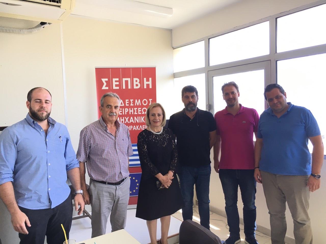 Η κα. Βρέντζου η οποία έτυχε εγκάρδιας υποδοχής τόσο από επιχειρηματίες όσο και από τους εργαζόμενους των  επιχειρήσεων τους, είχε αρχικά συνάντηση με τα μέλη του Συνδέσμου Επιχειρήσεων Βιομηχανικής περιοχής Ηρακλείου . Ο πρόεδρος του  Συνδέσμου κ. Λευτέρης Αντωνακάκης αναφέρθηκε στα αυξημένα προβλήματα των επιχειρήσεων κυρίως την υπερφορολόγηση  ενώ συζήτησαν και για το αναπτυξιακό σχέδιο .