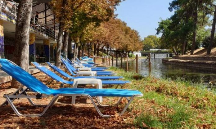 Όπως καταγράφει το trikalavoice.gr κάτω από την παραποτάμια οδό Αμαλίας που έκλεισε πειραματικά και για μια εβδομάδα με στόχο να πεζοδρομηθεί, στήθηκαν ξαπλώστρες και τραπεζάκια για να απολαμβάνει όποιος θέλει το ποτάμι… σαν να είναι θάλασσα.
