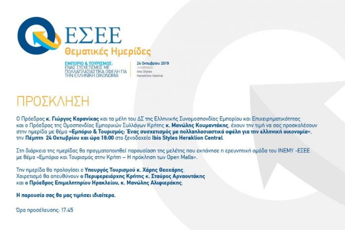 ΕΠΙΚΑΙΡΟΤΗΤΑ Πρόσκληση σε Ημερίδα της ΕΣΕΕ-ΟΕΣΚ με θέμα: Εμπόριο & Τουρισμός 21 Οκτωβρίου 2019 6 Κοινοποίηση :Κοινοποίηση :