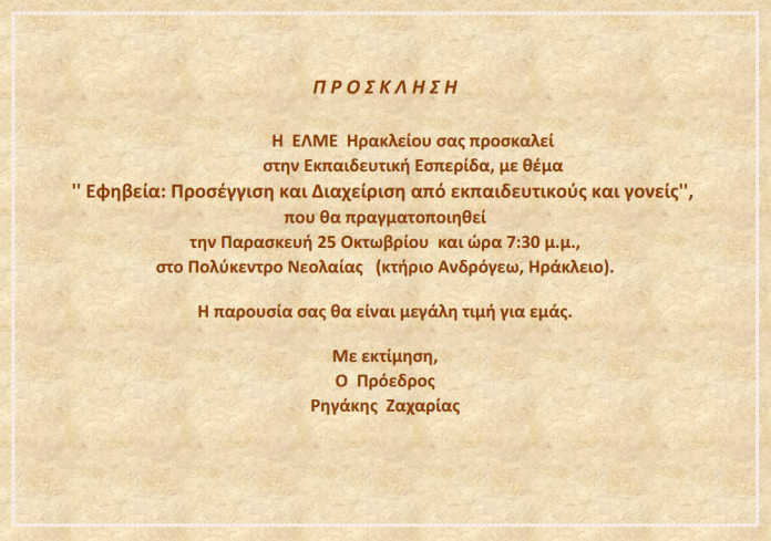 ΕΠΙΚΑΙΡΟΤΗΤΑΠΑΙΔΕΙΑ Εκπαιδευτική εσπερίδα ΕΛΜΕ σήμερα στο Πολύκεντρο Νεολαίας 25 Οκτωβρίου 2019 4 Κοινοποίηση : Ακολουθήστε το Entospolis στο Facebook Κοινοποίηση :