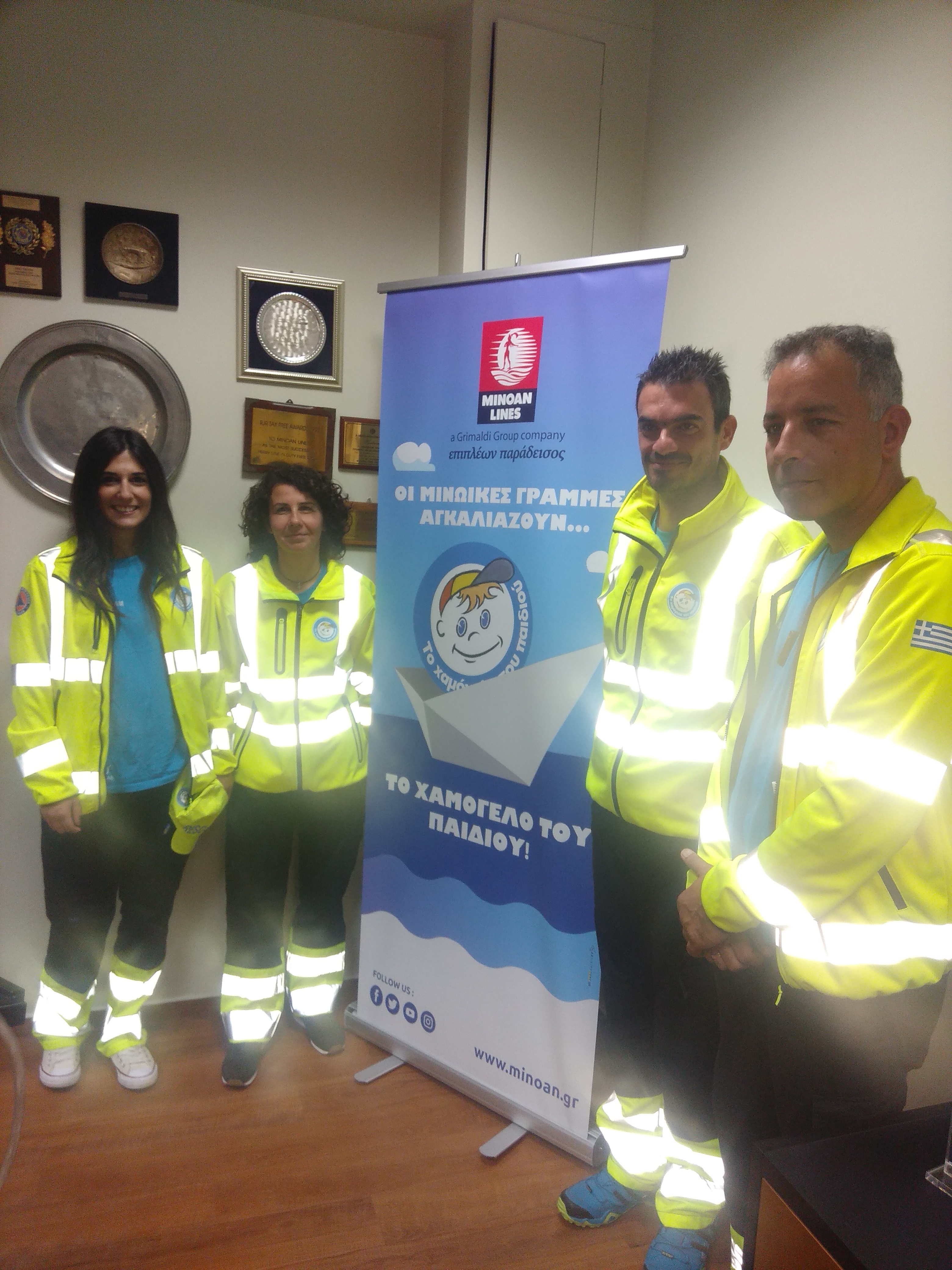 Οι Μινωικές Γραμμές πραγματοποίησαν σήμερα Τετάρτη 06.11.2019, στα Κεντρικά Γραφεία Ηρακλείου, σεμνή τελετή για την παρουσίαση της ανάληψης της χορηγίας ως αποκλειστικού μεταφορέα του Οργανισμού «ΤΟ ΧΑΜΟΓΕΛΟ ΤΟΥ ΠΑΙΔΙΟΥ», στα πλαίσια των ακτοπλοϊκών μετακινήσεων των ατόμων και των οχημάτων του από/προς την Κρήτη. Hεκδήλωση πραγματοποιήθηκε παρουσία του Διευθύνοντος Συμβούλου της εταιρείας,κ. Αντώνη Μανιαδάκη, του Προέδρου του Διοικητικού Συμβουλίου του Οργανισμού,κ. Κώστα Γιαννόπουλου, του ανθρώπινου δυναμικού της εταιρείας, των εκπροσώπων του Οργανισμού και των μελών της Ομάδας Έρευνας και Διάσωσης Εξαφανισμένων Παιδιών «Θανάσης Μακρής».
