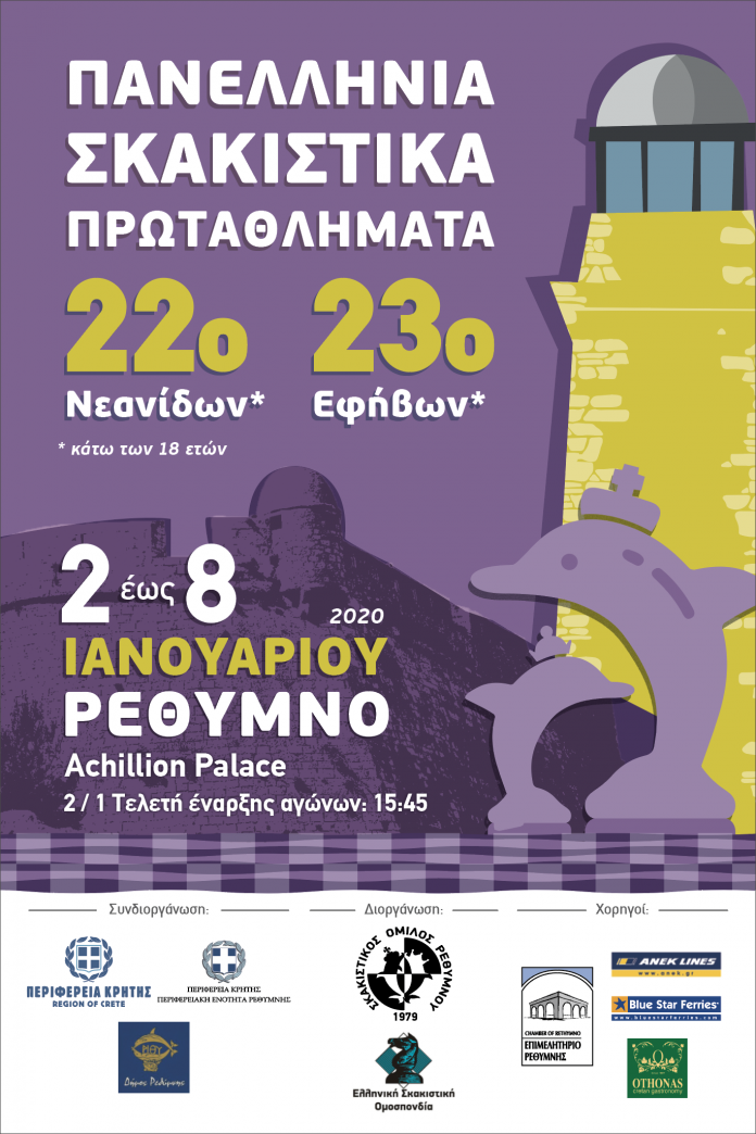 Ο Σκακιστικός Όμιλος Ρεθύμνου με συνδιοργανωτές την Περιφέρεια Κρήτης, τον Δήμο Ρεθύμνου και την Ελληνική Σκακιστική Ομοσπονδία διοργανώνει για δεύτερη συνεχή χρονιά τα Πανελλήνια Πρωταθλήματα ατομικά κάτω των 18 και συγκεκριμένα το 23ο για τους έφηβους και το 22ο  για τις νεάνιδες. Ο χώρος διεξαγωγής των αγώνων είναι ο συνεδριακός χώρος του Αχίλλειον Παλλάς και οι αγώνες ξεκινάνε την Πέμπτη 2 Ιανουαρίου (15.45 τελετή έναρξης) και τελειώνουν την Τετάρτη 8 Ιανουαρίου (15.45 τελετή λήξης).