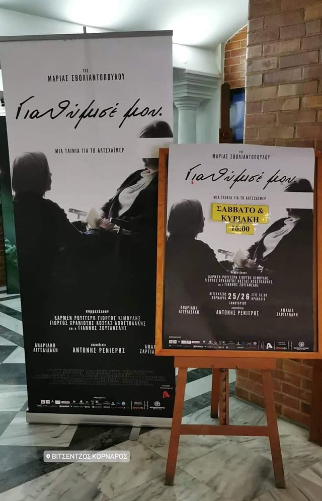 Όλα τα έσοδα θα διατεθούν στην Αλληλεγγύη Ηρακλείου Εταιρία Alzheimer και υγιούς Γήρανσης, από τις προβολές στις οποίες θα είναι αρωγός.