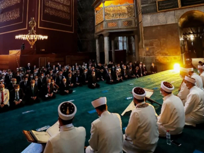 Ο Ρετζέπ Ταγίπ Ερντογάν αγνοώντας τη διεθνή κοινότητα, μετέτρεψε τη Μεγάλη Εκκλησία σε τζαμί, με τον ίδιο να συμμετέχει στη μουσουλμανική προσευχή, η οποία πραγματοποιήθηκε στο παγκόσμιο μνημείο πολιτιστικής κληρονομιάς, μετά από 86 χρόνια. Και καθώς πρόκειται για χριστιανικό ναό, ο «Σουλτάνος» φρόντισε να προβεί σε όλες τις απαραίτητες ενέργειες για να καλυφθούν όλα τα σύμβολα των Χριστιανών.