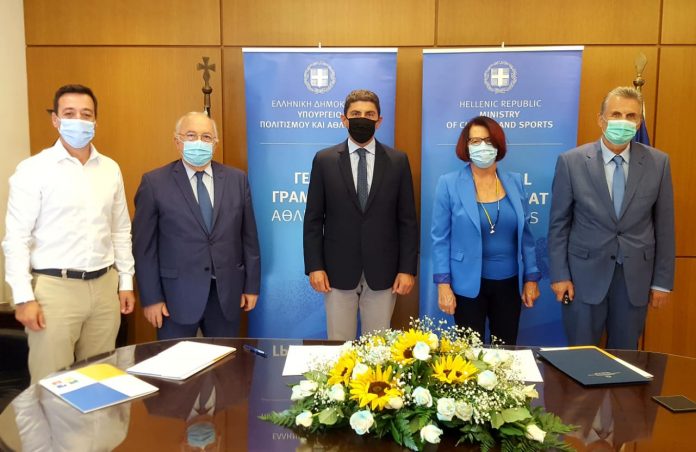 Μνημόνιο Συνεργασίας μεταξύ της ΓΓΑ και της Ανώνυμης Εταιρίας Μονάδων Υγείας, η οποία έχει την ευθύνη λειτουργίας και διαχειρίζεται την Πολυκλινική του Ολυμπιακού Χωριού, υπέγραψαν ο Υφυπουργός Πολιτισμού και Αθλητισμού, Λευτέρης Αυγενάκης και η Διευθύνουσα Σύμβουλος της ΑΕΜΥ, Ευαγγελία Βελέντζα.