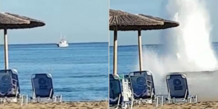 Η «εντυπωσιακή» έκρηξη συγκέντρωσε τα βλέμματα αρκετών λουομένων που βρίσκονταν εκείνη την ώρα στην παραλία, μιας και η εξουδετέρωση του βλήματος έγινε σε κοντινή απόσταση από την ακτή.