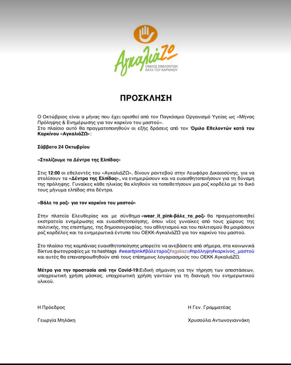 AγκαλιάΖΩ-ΕΚΔΗΛΩΣΗ ΓΙΑ ΤΟΝ ΚΑΡΚΙΝΟ ΤΟΥ ΜΑΣΤΟΥ