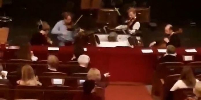 Η στιγμή που η ορχήστρα αρχίζει να παίζει για να ηρεμήσει τους θεατές