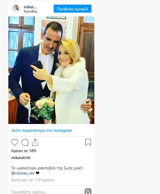 Μάλιστα, η ίδια ανήρτησε και φωτογραφίες από τον γάμο στον προσωπικό της λογαριασμό στο instagram. “Το ωραιότερο..ραντεβού της ζωής μας!!”, έγραψε.