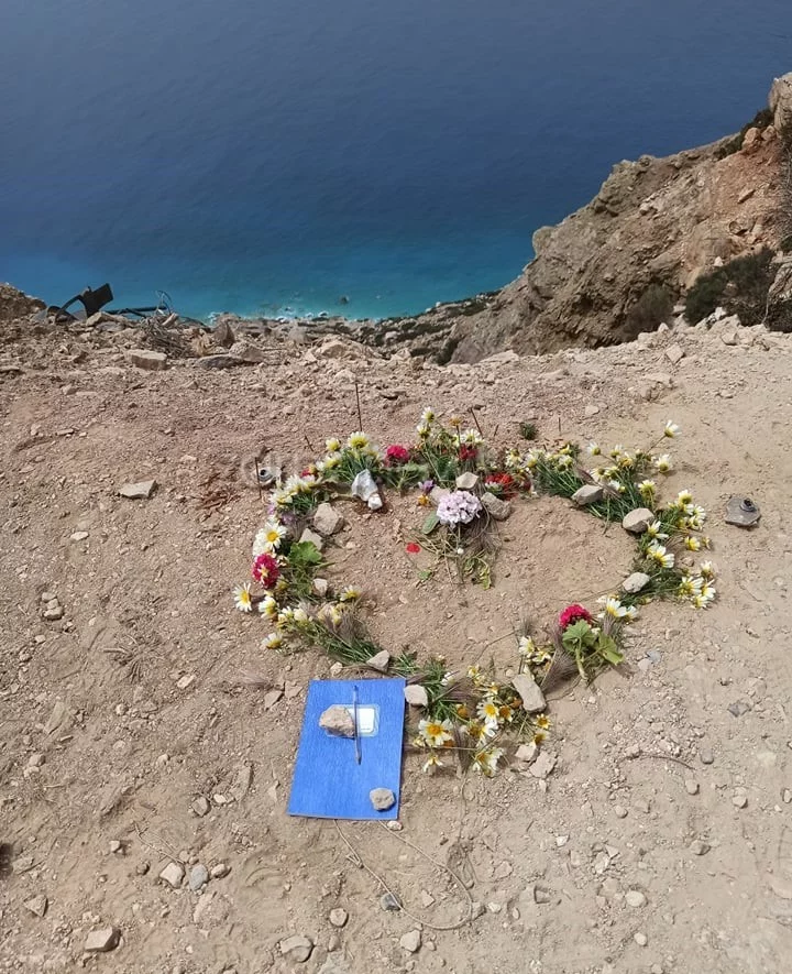Στο σημείο από το οποίο έπεσε το αυτοκίνητο στον γκρεμό, άφησαν ένα στεφάνι σε σχήμα καρδιάς και ένα τετράδιο με αφιερώσεις.