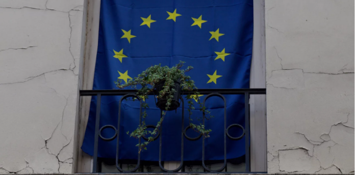 Μία σημαία της ΕΕ στο μπαλκόνι για την ημέρα της Ευρώπης
