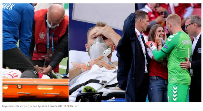 Οι σκηνές ήταν σοκαριστικές, με τους παίκτες της Δανίας να σχηματίζουν ένα ανθρώπινο τείχος μπροστά από τον 29χρονο, για να μη φαίνεται τι συμβαίνει, ενώ το ιατρικό επιτελείο έκανε ανάνηψη και τεχνητή αναπνοή στον άτυχο ποδοσφαιριστή, ο οποίος πάλευε για τη ζωή του.