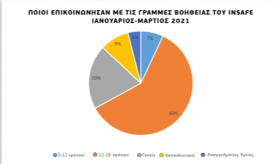 Οι έφηβοι αντιπροσωπεύουν το μεγαλύτερο μέρος των χρηστών που ήρθαν σε επαφή με μια γραμμή βοήθειας  το τρίμηνο Ιανουαρίου-Μαρτίου 2021 ακολουθούν τα μικρότερης ηλικίας παιδιά, οι γονείς, οι εκπαιδευτικοί και οι επαγγελματίες ψυχικής υγείας.  Το ποσοστό κλήσεων από εκπαιδευτικούς μειώθηκε κατά πέντε ποσοστιαίες μονάδες, ενώ οι κλήσεις από γονείς αυξήθηκαν κατά τρεις ποσοστιαίες μονάδες.
