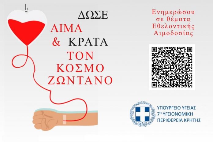 Η 7η Υγειονομική Περιφέρεια Κρήτης, με αφορμή τον φετινό εορτασμό και στόχο την ενημέρωση και προσέλκυση περισσότερων συνειδητοποιημένων εθελοντών αιμοδοτών, την μεγαλύτερη πρόκληση για το σύστημα αιμοδοσίας της χώρας μας, μέσω της προβολής της ανθρωπιστικής διάστασης και εξάλειψης κάθε προκατάληψης, φόβου και άγνοιας σχετικά με την εθελοντική αιμοδοσία, προχώρησε στη δημιουργία ψηφιακού εικονιδίου QR (Quick Response Code).