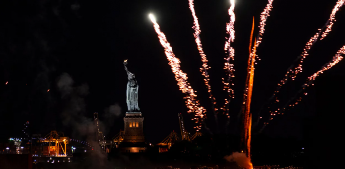 Πυροτεχνήματα φώτισαν τον ουρανό πάνω απ’ τον ποταμό Χάντσον μετά την άρση των μέτρων από τον κυβερνήτη της πολιτείας Άντριου Κουόμο, που επέτρεψε ο εμβολιασμός του 70% και πλέον των ενηλίκων με τουλάχιστον μία δόση εμβολίου κατά του νέου κορωνοϊού και ορόσημα της Νέας Υόρκης, όπως το Empire State Building φωταγωγήθηκαν στα χρώματα της πολιτείας, μπλε και χρυσό. Σ’ ολόκληρο το Μανχάταν ορδές ατόμων χωρίς μάσκες απολάμβαναν το θέαμα, ενώ άλλοι κατέκλυζαν εστιατόρια – σε εξωτερικούς, αλλά και εσωτερικούς χώρους – η μετείχαν σε πάρτι σε μπαρ στις οροφές κτιρίων, που παρέμεναν κλειστά για σχεδόν ενάμιση χρόνο.