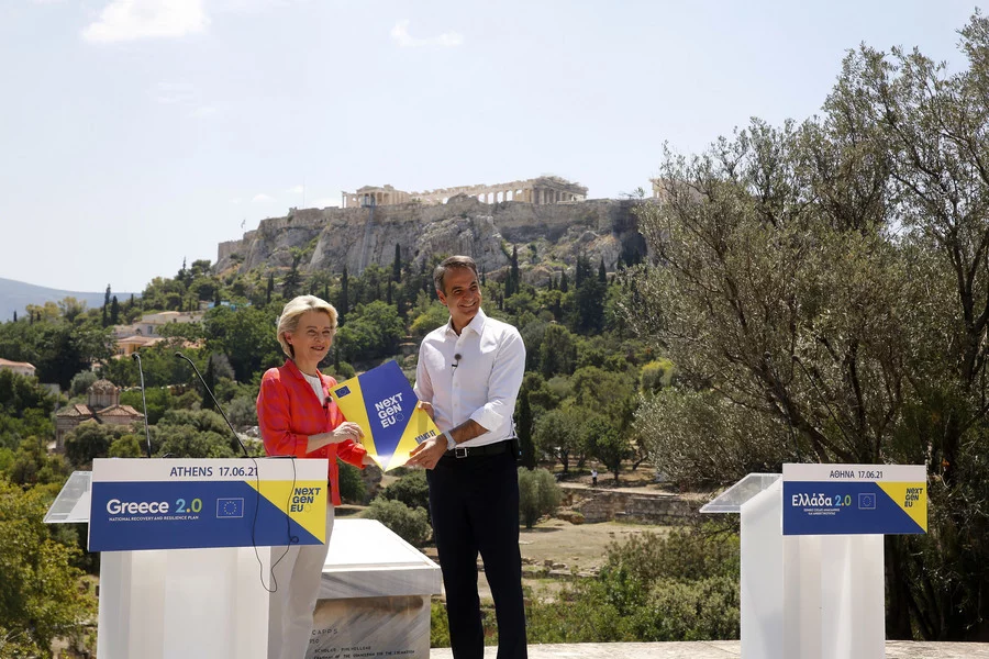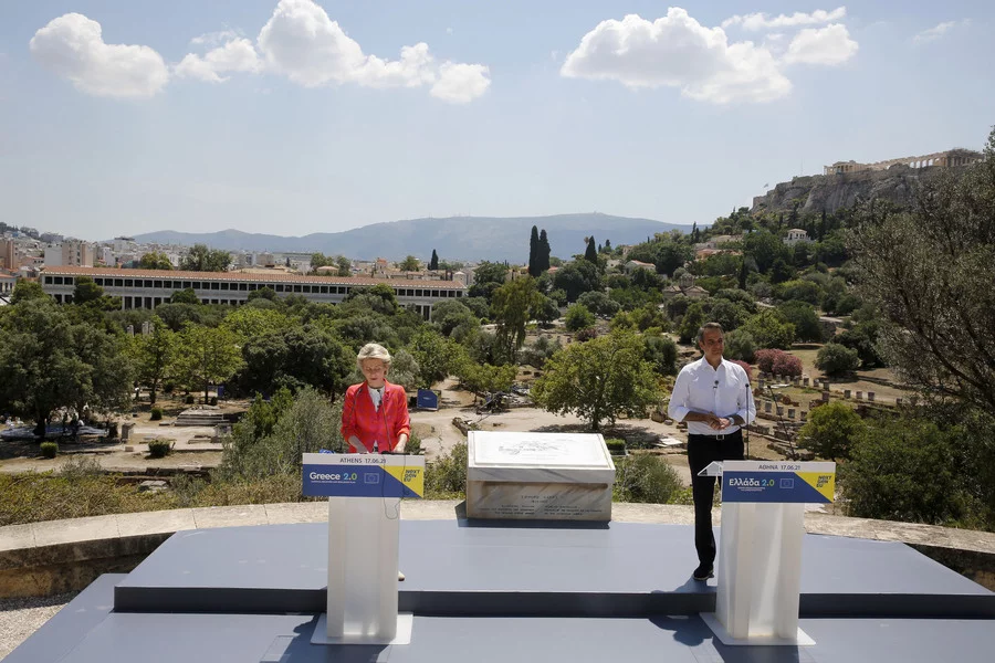 «Υποδεχόμαστε την Πρόεδρο της Ευρωπαϊκής Επιτροπής σε μια ιστορική στιγμή για την Ευρώπη και την Ελλάδα. Είναι πιστεύω η τελευταία πράξη της αναταραχής από την πανδημία και η πρώτη μιας νέας εποχής» τόνισε ο πρωθυπουργός, Κυριάκος Μητσοτάκης, μιλώντας στην εκδήλωση για την παρουσίαση δράσεων του Εθνικού Σχεδίου Ανάκαμψης και Ανθεκτικότητας «Ελλάδα 2.0» στον χώρο της Αρχαίας Αγοράς, μαζί με την με την πρόεδρο της Ευρωπαϊκής Επιτροπής, Ούρσουλα Φον ντερ Λάιεν.
