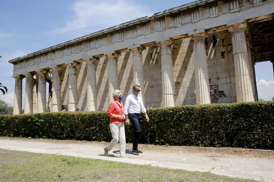 Στην Αθήνα βρίσκεται σήμερα η πρόεδρος της Ευρωπαϊκής Επιτροπής Ούρσουλα φον ντερ Λάιεν, προκειμένου να συναντηθεί με τον πρωθυπουργό Κυριάκο Μητσοτάκη στο πλαίσιο της περιοδείας στις ευρωπαϊκές πρωτεύουσες λίγο πριν οι Βρυξέλλες ανάψουν το πράσινο φως για τα εθνικά σχέδια που θα χρηματοδοτήσει το Ευρωπαϊκό Ταμείο ώστε να αντιμετωπιστούν τα προβλήματα που προκάλεσε η πανδημία του κορωνοϊού.