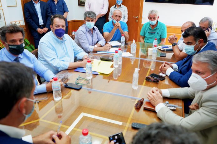 Αμέσως μετά ακολούθησε σύσκεψη που συγκάλεσαν ο Υπουργός Χάρης Θεοχάρης και ο Περιφερειάρχης Κρήτης Σταύρος Αρναουτάκης όπου είχαν προσκληθεί οι εκπρόσωποι των φορέων τουρισμού.