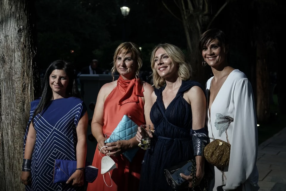 Ανάμεσα στους καλεσμένους και ηθοποιοί, όπως η Κάτια Δανδουλάκη, αλλά και η Αννα Μαρία Παπαχαραλάμπους που πρωταγωνίστησε στο κίνημα #metoo στο θέατρο. Εκεί και η Σμαράγδα Καρύδη.