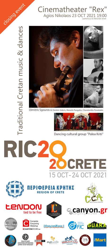 Με τη συνδιοργάνωση της Περιφέρειας Κρήτης διεξάγεται η 19η Παγκόσμια Συνάντηση canyoning, RIC 2020 Crete, από τις 15 έως τις 24 Οκτωβρίου 2021 στην Ιεράπετρα.