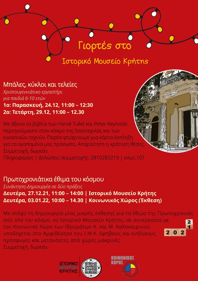 Δευτέρα, 27.12.2021, ώρες 11:00 – 14:00, στο Ιστορικό Μουσείο Κρήτης (Αμφιθέατρο Γιάννη Περτσελάκη)