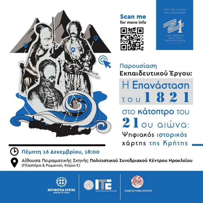 Η Περιφέρεια Κρήτης, το Πανεπιστήμιο Κρήτης  και το  Ίδρυμα Τεχνολογίας και Έρευνας (ΙΤΕ) παρουσιάζουν τον Ψηφιακό Ιστορικό Χάρτη της Επανάστασης του 1821 στην Κρήτη