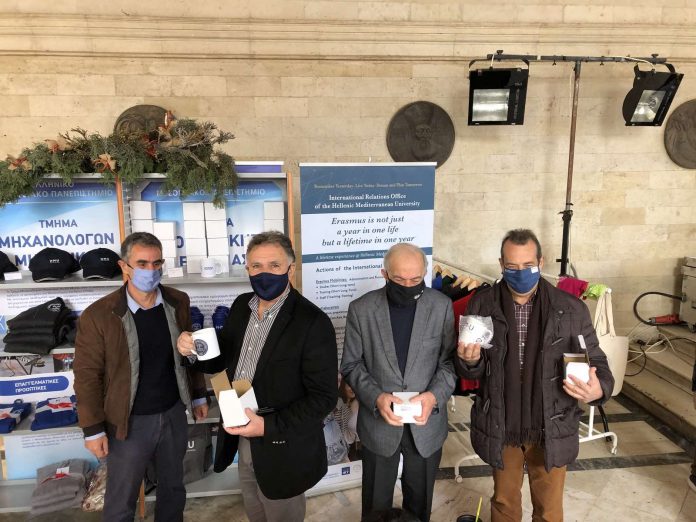 Στο Aίθριο του Δημαρχείου τοποθετήθηκαν ειδικές και καλαίσθητες προθήκες για την έκθεση των ειδών, το σύνολο των οποίων φέρει το λογότυπο του Ελληνικού Μεσογειακού Πανεπιστημίου, όπως στυλό, κούπες και είδη ρουχισμού.