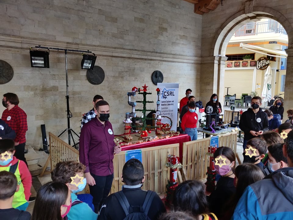 Στον ίδιο χώρο η Λέσχη Ρομποτικής και το Εργαστήριο Συστημάτων Ελέγχου και Ρομποτικής του ΕΛΜΕΠΑ, έκαναν επίδειξη ενός πρότυπου ρομποτικού συστήματος στολίσματος Χριστουγεννιάτικου δέντρου και τρισδιάστατη εκτύπωση στολιδιών που επέλεγαν οι επισκέπτες. Περισσότεροι από 100 μαθητές είχαν την ευκαιρία να δουν από κοντά τα συστήματα αυτά και να ρωτήσουν φοιτητές και ερευνητές για τον τρόπο λειτουργίας τους.