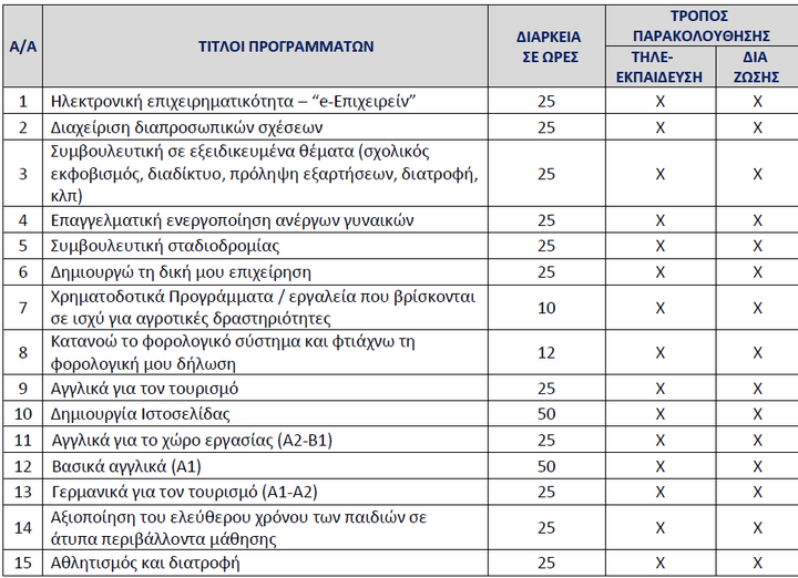 | 4 | Επαγγελματική ενεργοποίηση ανέργων γυναικών | 25 | Χ | Χ |