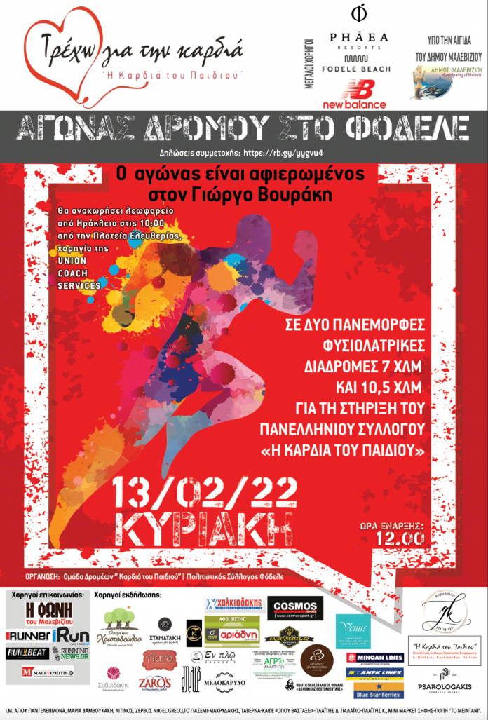Σε μία μαγευτική διαδρομή θα πραγματοποιηθεί την Κυριακή ο 7ος αγώνας ανωμάλου δρόμου στο Φόδελε, με στόχο τη στήριξη Πανελλήνιου Συλλόγου Ενημέρωσης & Προστασίας Καρδιοπαθών Παιδιών, «Η Καρδιά του Παιδιού».