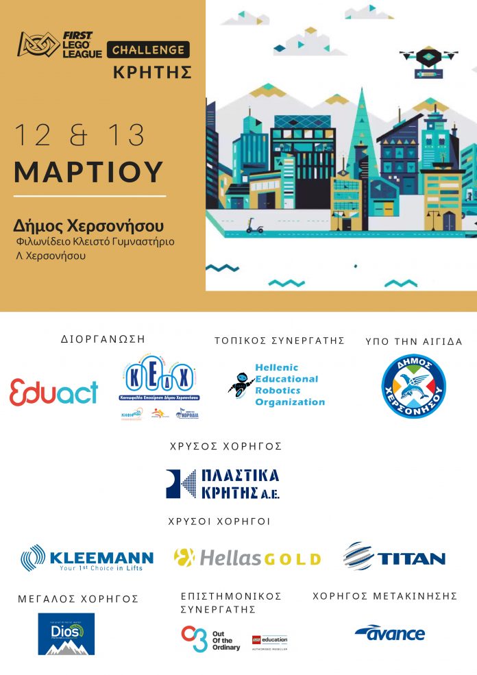 Το Σάββατο και Κυριακή 12 & 13 Μαρτίου 2022, θα διεξαχθεί ο Περιφερειακός Διαγωνισμός Κρήτης του FIRST® LEGO® League, στο Φιλωνίδειο κλειστό γυμναστήριο Λ. Χερσονήσου. Πρόκειται για μια συνδιοργάνωση της Eduact με την Κοινωφελή Επιχείρηση Δήμου Χερσονήσου (Κ.Ε.Δ.Χ.), με τοπικό συνεργάτη το Εκπαιδευτικό Κέντρο HERO Ηellenic Εducation Ρobotics Οrganisation και υπό την Αιγίδα του Δήμου Χερσονήσου.